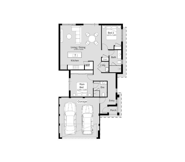 A double garage at the front gives you room to move, while the open-plan kitchen, living, and dining area brings everyone together in one spacious, light-filled hub. Toward the rear, the minor bedroom sits beside the main bathroom, offering flexibility for guests, family, or a growing lifestyle. A smart laundry recess keeps daily life simple and uncluttered.