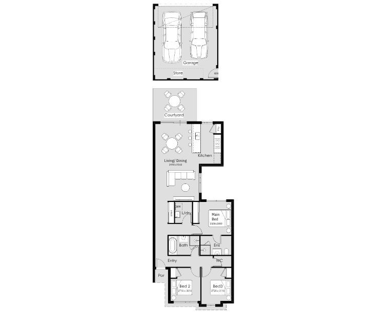 This 3×2 home opens with clarity and purpose, placing all bedrooms at the front for easy flow and everyday simplicity. The two minor bedrooms sit first, positioned beside the main bathroom to keep the morning rush running smoothly. Just beyond, the laundry leads you to the master bedroom—a private retreat with its own ensuite and built-in robe, giving you comfort without complication.